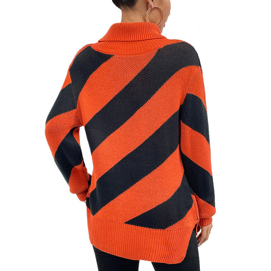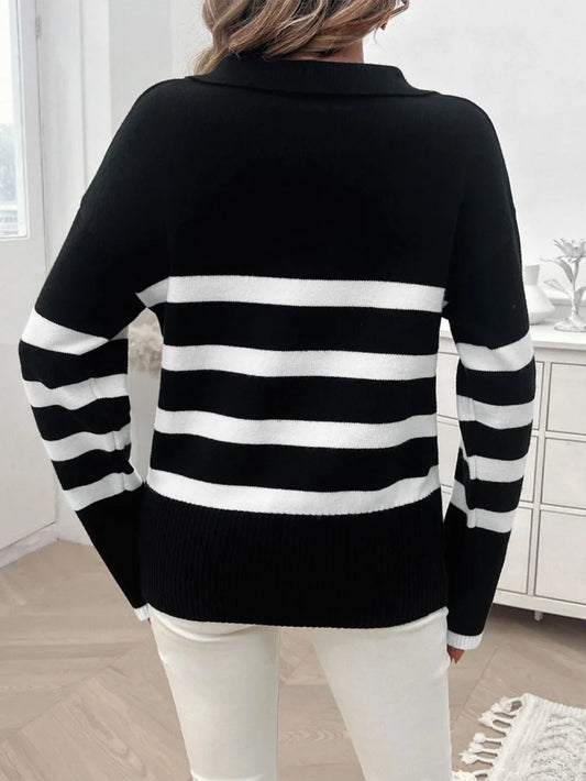 Multicolour Dotty Striped Pattern Knit Drop Shoulder Sweater