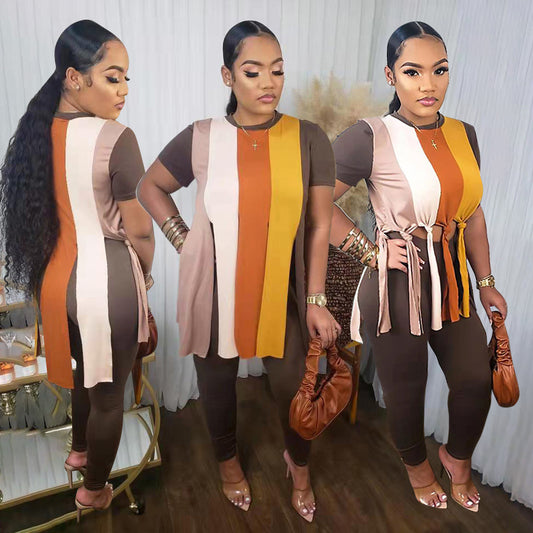 Solid Color Splicing Tassel Two-piece Set